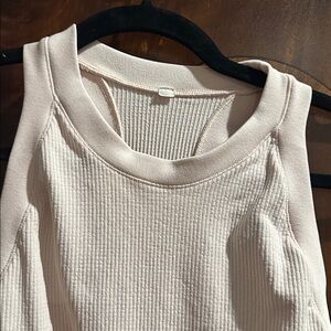 Stylish light pink ribbed tank top. Perfect for casual wear.
