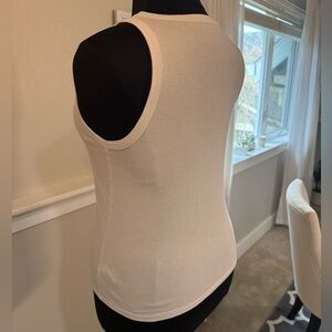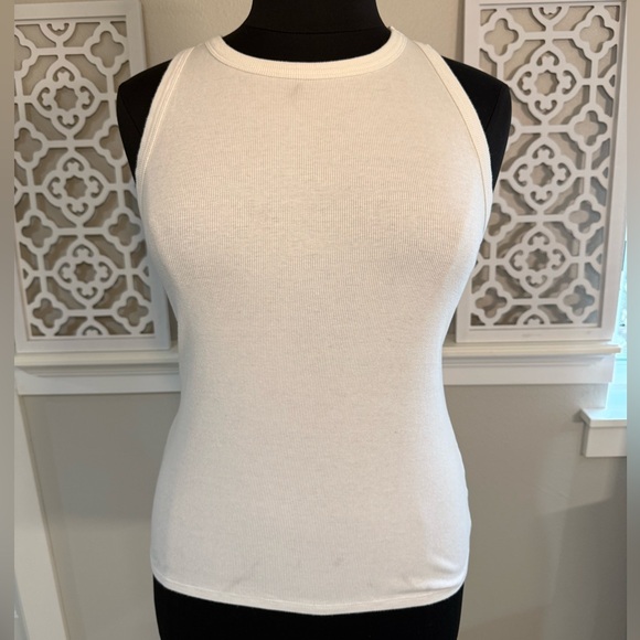 Chic white ribbed tank. Ideal for layering or solo wear. Soft and versatile. Garment does have some discoloration(see photos).