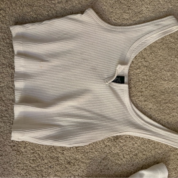 Elevate your casual wardrobe with this chic white ribbed tank top. Perfect for layering or wearing on its own, this top offers both comfort and style.