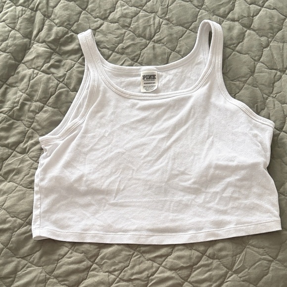 Stylish white crop top by PINK Victoria's Secret. Ribbed texture for a trendy look. Ideal for casual wear.