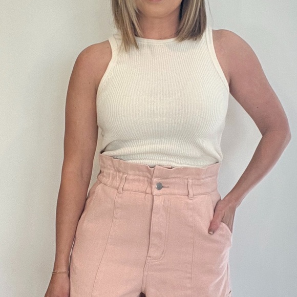 Stylish white ribbed tank top. Perfect for casual wear.