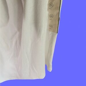 Stylish white ribbed top. Perfect for any occasion. 58% cotton 37% recycle polyester 5% spandex. Laying flat measures 4X measures 26 inches pit to pit.. 29 inches in length. 2X measures 21 inches pit to pit. 25 inches length.