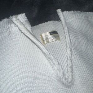 This chic off-shoulder top features a stylish ribbed design, perfect for any occasion. The elegant white color adds a touch of sophistication to your wardrobe. Fits like Medium I’d say, front V is adjustable (open or close)