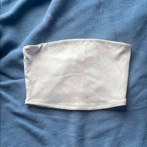 Stylish white ribbed tube top. Perfect for casual wear.