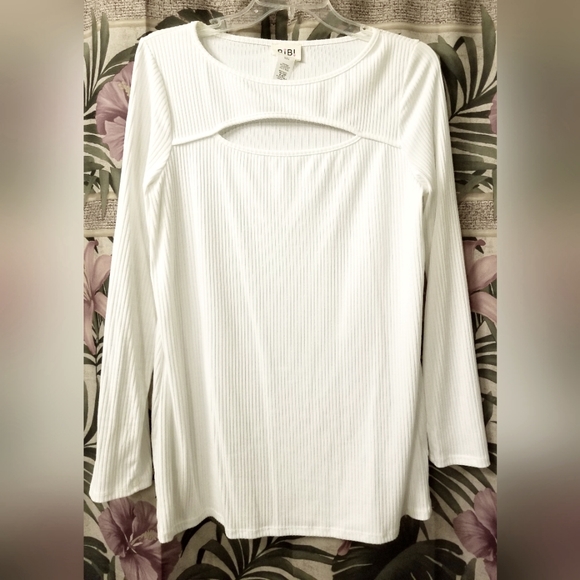 White ribbed poly cotton top Worn once Size Med 28" in length