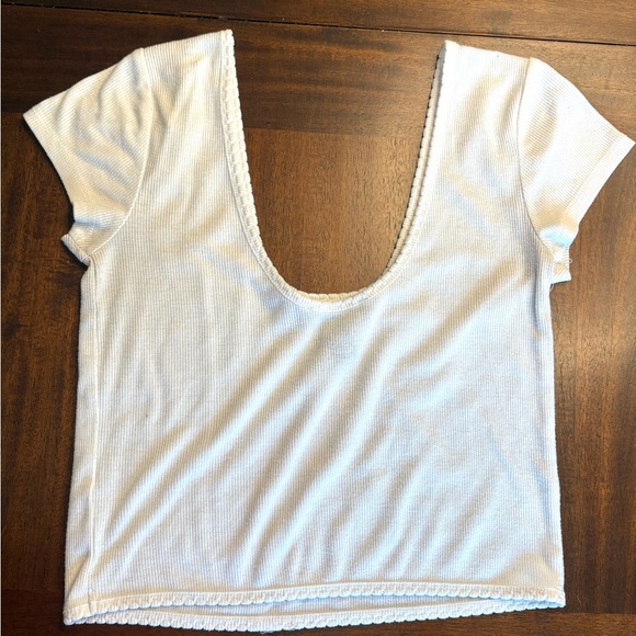 Elevate your wardrobe with this chic white ribbed crop top. Perfect for any occasion, this versatile piece offers both comfort and style. Size L.