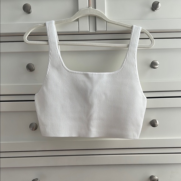 Elevate your wardrobe with this chic white ribbed top. Perfect for any occasion, it offers both style and comfort.