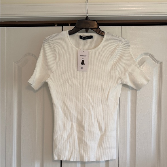 Elevate your wardrobe with the White Ribbed Women's Top. Perfect for any occasion, this top offers a sleek and stylish look.