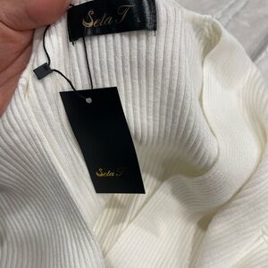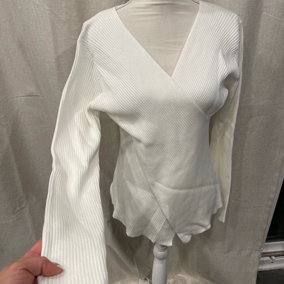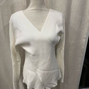 White Ribbed Wrap Sweater