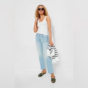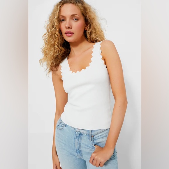 This tank may be an absolutely essential wardrobe staple, but it's anything but boring. Detailed with triangle ricrac trim at the neckline and shoulder straps, and made from a compression knit fabric that effortlessly flatters, this silhouette pairs well with just about anything. We are wearing it literally all the time, including under a blazer in the office, with wide leg denim for a retro date night look, or with a flowy maxi skirt when it's hot out!