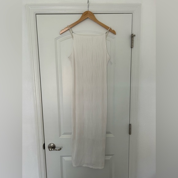 Pure white water ripple textured cami dress, lined