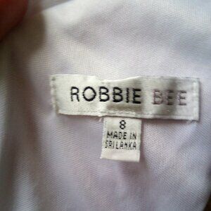 Robbie Bee mock neck, tie back chiffon dress in white. Size 8, but extremely forgiving (I usually wear size 4-6). Pink version pics from Macy's to show the tie back.