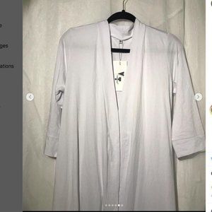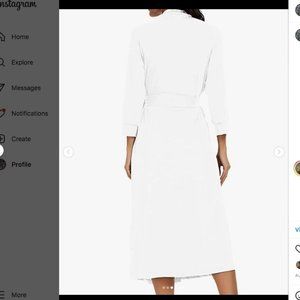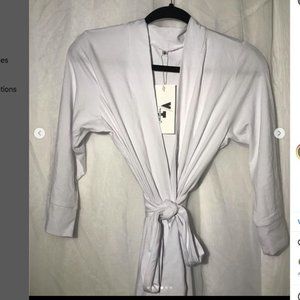 Darling white robe made of thick material so you can wear around the house. It has pockets and a tie belt. New with tags and original packaging.