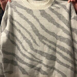 White Rose Zebra/Tiger Stripe Sweater Grey/White Size L, worn 1x no flaws