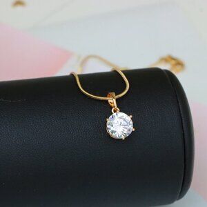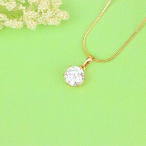 Elegant white solitaire pendant set in rose gold, featuring a large round-cut stone that sparkles brilliantly—perfect for timeless sophistication.