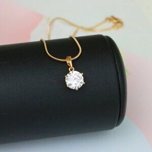 Elegant white solitaire pendant set in rose gold, featuring a large round-cut stone that sparkles brilliantly—perfect for timeless sophistication.