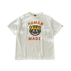 White Round-Neck Short-Sleeved T-Shirt With Tiger Head Print Human Made