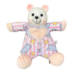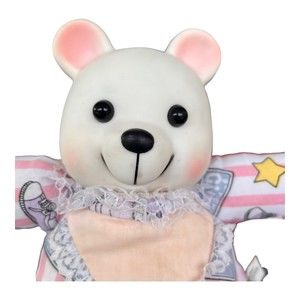 White Rubber Head Bear Plush 11in Michigan Great Lake State Lace Zipper Pocket Vintage, date unknown