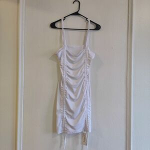 White Ruched Bodycon Mini Dress