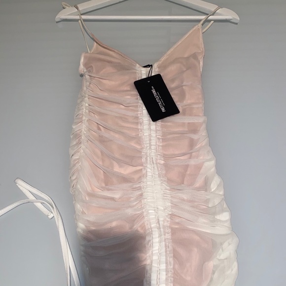 White Ruched Mini Dress