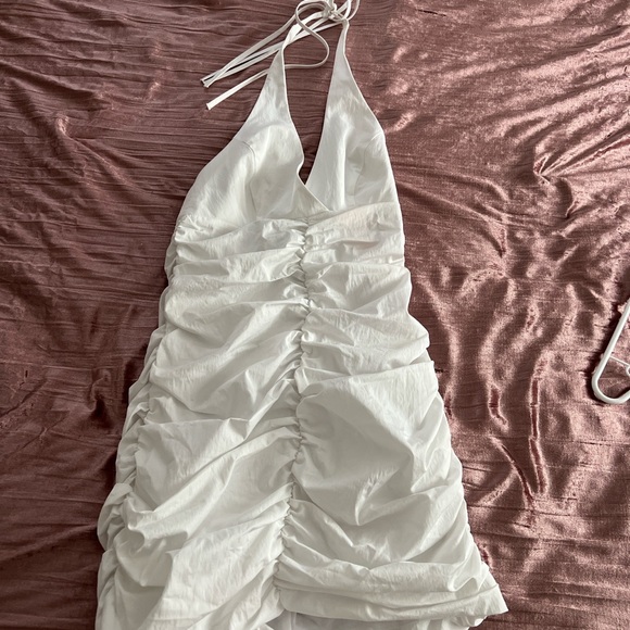White Ruched Mini Dress
