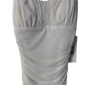 White Ruched Mini Dress With Glitter Accents Adjustable Spaghetti Straps