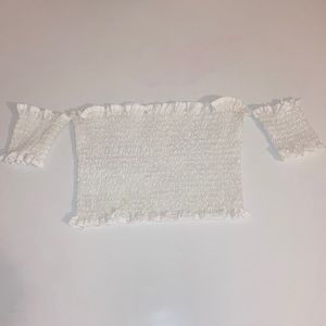 White Ruched Off-Shoulder Top