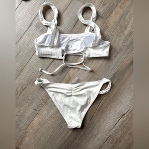 Cupshe. White ruffle bikini. Tie back top. Scrunch bottom. Size small. Good condition
