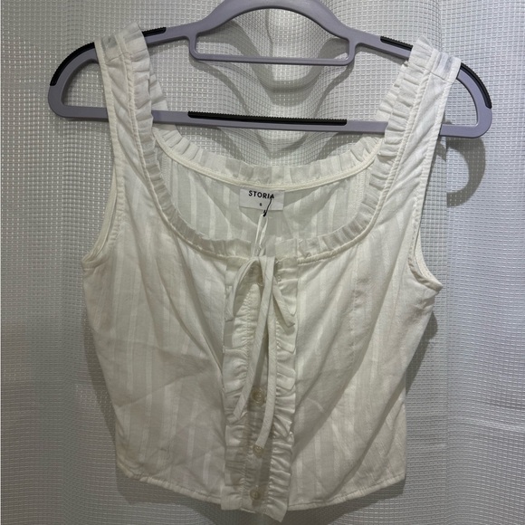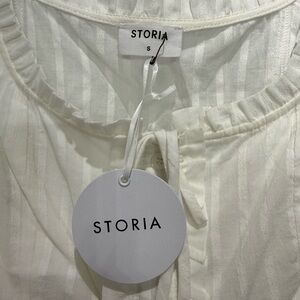 Chic white Storia blouse with ruffles and button front. Bridgerton-esque. New with tags