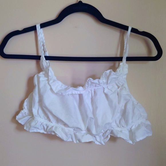 White Ruffle Bra Top, super cropped Size: large Like new, maybe worn once