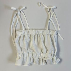 Misguided white ruffle crop top with tie straps. Top has elastic at the top and waist. Size is a US 4/UK 8/EUR 36