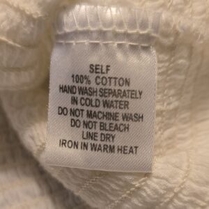 Elegant white top with ruffle accents. Ideal for stylish outings. 100% cotton. Waffle design