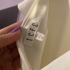 Worn a few times. In good condition. I’m a size 8 and its a little tight on me. Goes to a little above mid thigh and I’m 5’8.