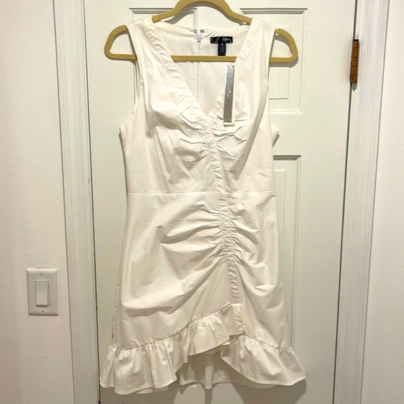 NWT white sleeveless mini ruffle dress with zipper closer. Fully lined.