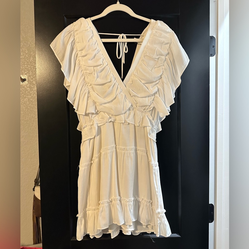 Medium white ruffle dress! I wore this for a game day and then never wore it again!