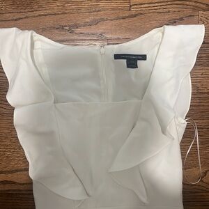 White Ruffle French Connection Dress. Size 4. Worn once and has been dry cleaned since wearing. Would be great for graduation, wedding, etc! Make me an offer— willing to negotiate price!