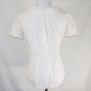 Short sleeve ruffle top from Gap. Very light thin material. There is a small stain on the ruffle and the front bottom. Good used condition.