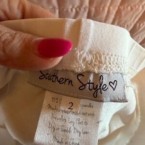 Charming white shorts with ruffle hem. Perfect for a playful look.