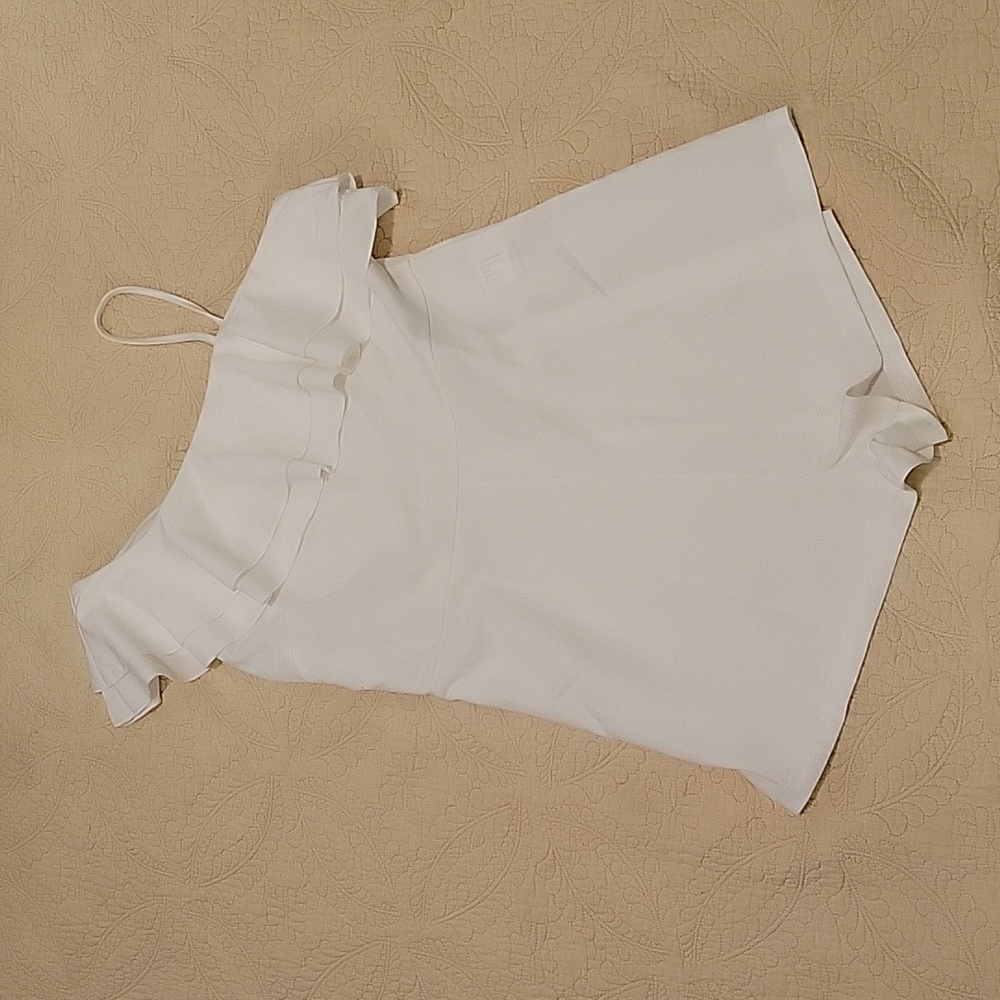 White dressy romper. One shoulder ruffle. Small