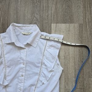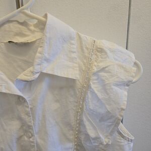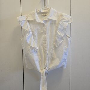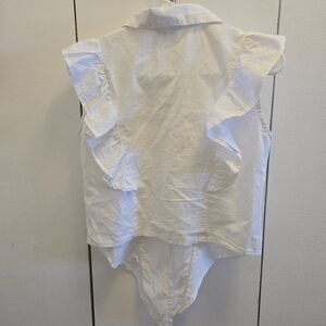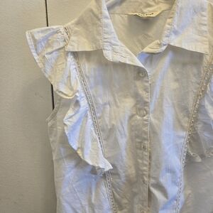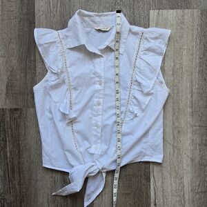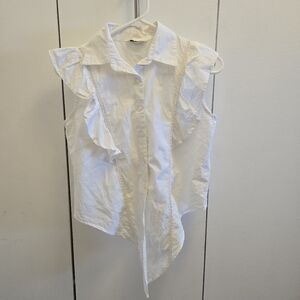 Elevate your style with this chic white ruffle sleeve button-up top.