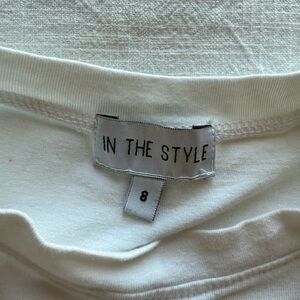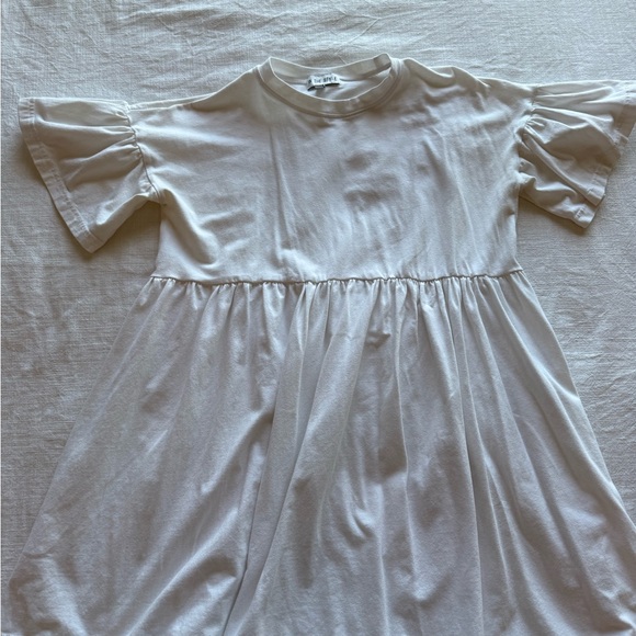 Casual white dress with ruffle sleeves.