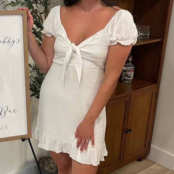 Charming white dress with ruffle sleeves. Perfect for bridal era!