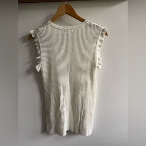 Elegant white top with ruffle sleeves, perfect for any occasion.