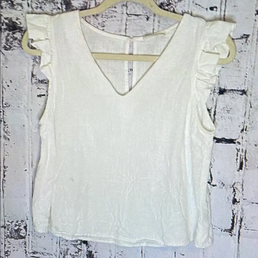Elegant white top with stylish ruffle sleeves. Perfect for any occasion.