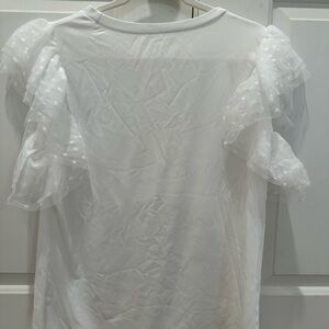 This white top features delicate ruffle sleeves, perfect for adding a touch of sophistication to any outfit. Ideal for both casual and formal occasions.