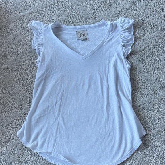 Elevate your style with this elegant white ruffle sleeve top. Perfect for any occasion, this top offers a chic and comfortable fit.