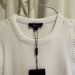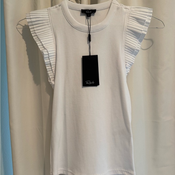 Chic white tank with pleated sleeves. Ideal for versatile styling. NWT.