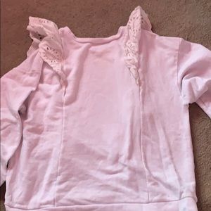Super comfortable white sweatshirt with ruffles going down the front and a little on the back.