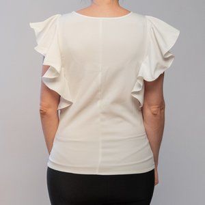 This beautifully feminine white ruffle top is perfect for summer! The ruffle detail on the sleeve makes it an easy way to dress up any outfit.