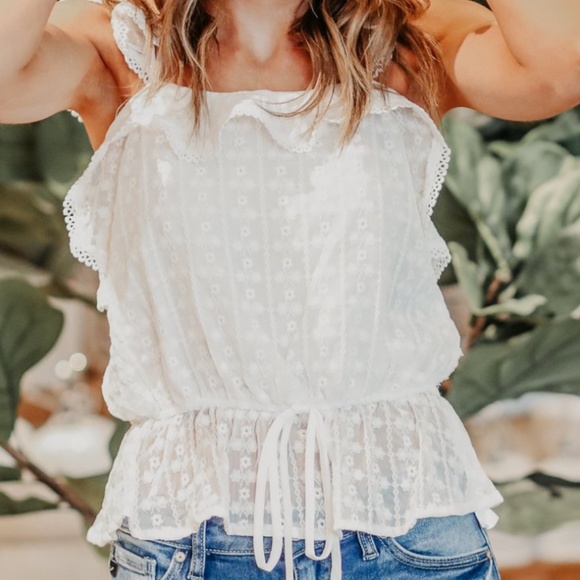 -White ruffle top -Eyelet -Tank top -Worn once/perfect condition